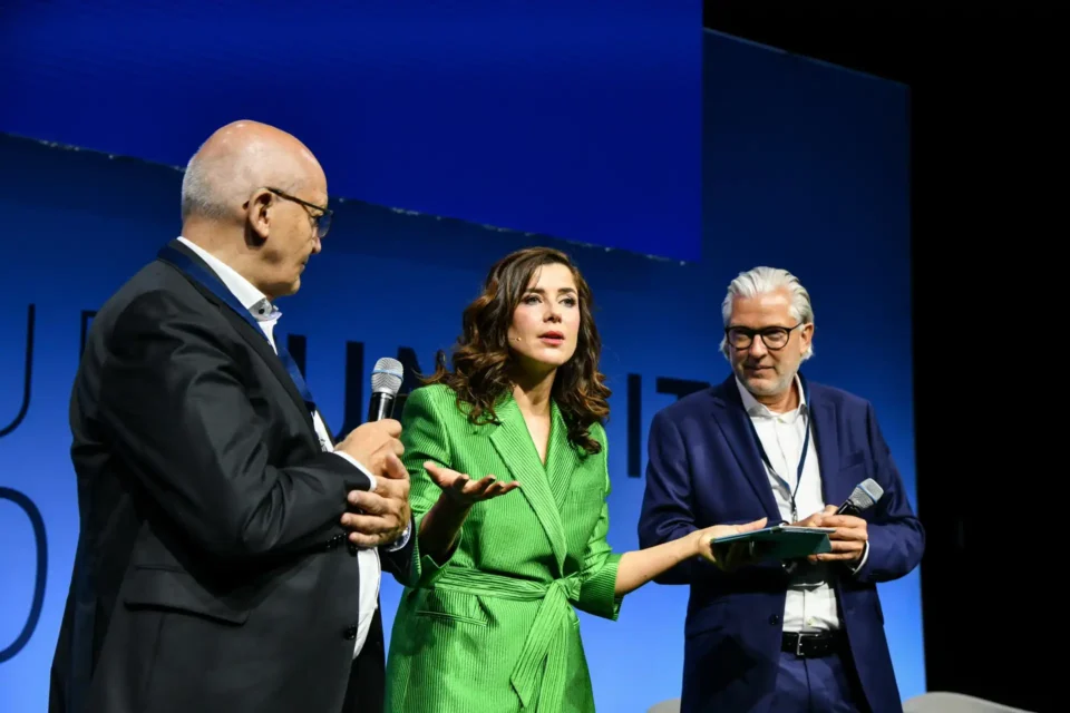 Im Berliner Gasometer diskutierten sie über konkrete Wege zu einer schnelleren, nachhaltigeren und digitaleren Planung. Durch das Programm führte Journalistin und Moderatorin Eva-Maria Lemke.